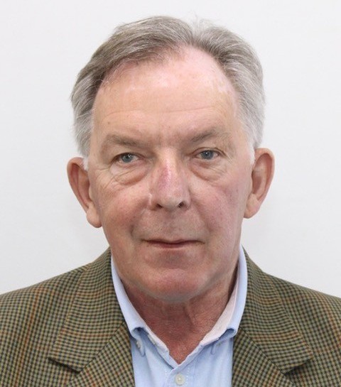 Portrait of an older man with gray hair wearing a brown checkered jacket